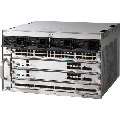 General Information Manufacturer: Cisco Systems, Inc Manufacturer Part Number: C9404R-48U-BNDL-1A Manufacturer Website Address: http://www.cisco.com Brand Name: Cisco Product Line: Catalyst Product Series: 9400 Product Name: Catalyst 9400 Ethernet Switch Packaged Quantity: 1 Product Type: Ethernet Switch Technical Information Features: Energy Efficient Interfaces/Ports Total Number of Network Ports: 48 Network (RJ-45): Yes Modular: Yes Port/Expansion Slot Details: - 24 x Gigabit Ethernet UPOE Network Port