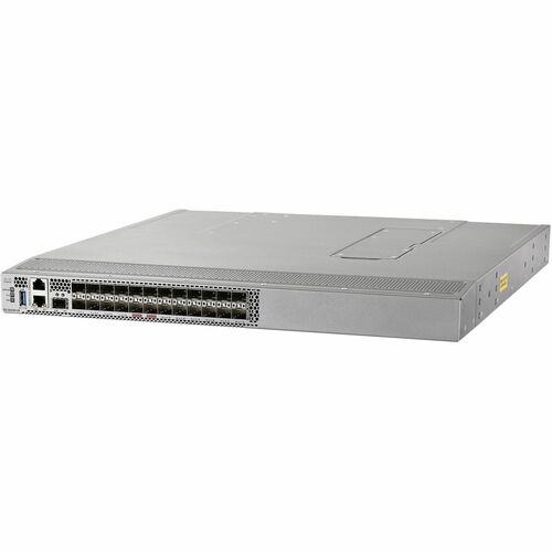 General Information Manufacturer: Cisco Systems, Inc Manufacturer Part Number: DSC9124VK9 Manufacturer Website Address: http://www.cisco.com Brand Name: Cisco Product Series: MDS 9100 Product Model: MDS 9124V Product Name: MDS 9124V Fibre Channel Switch Marketing Information: The next-generation Cisco MDS 9124V 64-Gbps 24-Port Fibre Channel Switch (Figure 1) provides high-speed Fibre Channel connectivity for all-flash arrays and high-performance hosts. This switch offers state-of-the-art analytics and telemetry capabilities built into its next-generation Application-Specific Integrated Circuit (ASIC) chipset. This switch allows seamless transition to Fibre Channel Non-Volatile Memory Express (NVMe/FC) workloads whenever available without any hardware upgrade in the SAN. It empowers small, midsize, and large enterprises that are rapidly deploying cloud-scale applications using extremely dense virtualized servers, providing the benefits of greater bandwidth, scale, and consolidation. Some of the main benefits for a smallscale Storage Area Network (SAN) are automatic zoning, nonblocking forwarding and a single port group of 24 ports. Benefits for a mid- to large-size SAN include higher scale for Fibre Channel control-plane functions, Virtual SANs, fabric login (FLOGI), device alias and name server scale, 24 ports of 64-Gbps nonoversubscribed line-rate ports, bidirectional airflow, and a fixed-form NVMe/FC-ready SAN switch with enhanced Buffer-to-Buffer (B2B) credits and capable of hardware-assisted Fibre Channel link encryption. Large-scale SAN architectures built with SAN core directors can expand 64-Gbps connectivity to the server rack using these switches configured in either switch mode or Network Port Virtualization (NPV) mode. Additionally, the switch supports enhanced diagnostic features such as Inter-Switch Link (ISL) and Host-BusAdapter (HBA) diagnostics, remote SFP (Read Diagnostic Parameter) diagnostics, remote port beaconing (Link Cable Beaconing) and advanced reliability features such as link level Forward Error Correction (FEC) with HBA ports. Main features and benefits The main features of the Cisco MDS 9124V 64-Gbps 24-Port Fibre Channel Switch include: - High performance: MDS 9124V architecture, with nonblocking arbitration, provides consistent 64-Gbps low-latency performance across all traffic conditions for every Fibre Channel port on the switch.