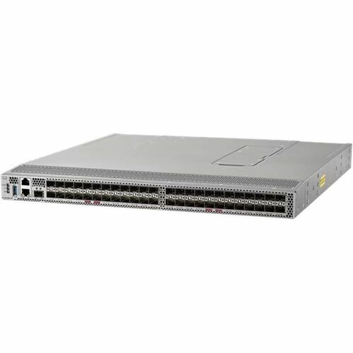 The next-generation Cisco MDS 9148V 64-Gbps 48-Port Fibre Channel Switch provides high-speed Fibre Channel connectivity for all-flash arrays and high-performance hosts. This switch offers state-of-the-art analytics and telemetry capabilities built into its next-generation Application-Specific Integrated Circuit (ASIC) chipset. This switch allows seamless transition to Fibre Channel Non-Volatile Memory Express (NVMe/FC) workloads whenever available without any hardware upgrade in the SAN. It empowers small, midsize, and large enterprises that are rapidly deploying cloud-scale applications using extremely dense virtualized servers, providing the benefits of greater bandwidth, scale, and consolidation. Some of the main benefits for a small-scale Storage Area Network (SAN) are automatic zoning, nonblocking forwarding, and smaller port groups of 24 ports. Benefits for a mid- to large-size SAN include higher scale for Fibre Channel control-plane functions, Virtual SANs, fabric login (FLOGI), device alias and name server scale, 48 ports of 64-Gbps non-oversubscribed line-rate ports, bidirectional airflow, and a fixed-form NVMe/FC-ready SAN switch with enhanced Buffer-to-Buffer (B2B) credits and capable of hardware-assisted Fibre Channel link encryption. Large-scale SAN architectures built with SAN core directors can expand 64-Gbps connectivity to the server rack using these switches configured in either switch mode or Network Port Virtualization (NPV) mode. Additionally, the switch supports enhanced diagnostic features such as Inter-Switch Link (ISL) and Host-Bus-Adapter (HBA) diagnostics, remote SFP (Read Diagnostic Parameter) diagnostics, remote port beaconing (Link Cable Beaconing) and advanced reliability features such as link level Forward Error Correction (FEC) with HBA ports.
