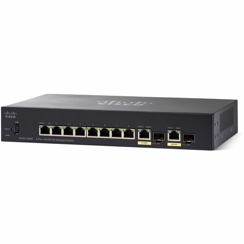 General Information Manufacturer: Cisco Systems, Inc Manufacturer Part Number: SF352-08MP-K9AU-RF Manufacturer Website Address: http://www.cisco.com Brand Name: Cisco Product Series: 350 Product Model: SF352-08MP Product Name: SF352-08MP 8-Port 10 100 POE Managed Switch Marketing Information: Cisco 350 Series Switches The Cisco 350 Series, part of the Cisco Small Business line of network solutions, is a portfolio of affordable managed switches that provides a reliable foundation for your business network. These switches deliver the features you need to improve the availability of your critical business applications, protect your sensitive information, and optimize your network bandwidth to deliver information and applications more effectively. Easy to set up and use, the Cisco 350 Series provides the ideal combination of affordability and capabilities for small businesses and helps you create a more efficient, better-connected workforce. The Cisco 350 Series is a broad portfolio of fixed-configuration managed Ethernet switches. Models are available with 48 ports of Fast Ethernet and 10 to 28 ports of Gigabit Ethernet connectivity, providing optimal flexibility to create exactly the right network foundation for your business. However, unlike other small business switching solutions that provide managed network capabilities only in the costliest models, all Cisco 350 Series Switches support the advanced security management capabilities and network features you need to support business-class data, voice, security, and wireless technologies. At the same time, these switches are simple to deploy and configure, allowing you to take advantage of the managed network services your business needs. Business Applications Whether you need a basic high-performance network to connect employee computers or a solution to deliver data, voice, and video services, the Cisco 350 Series offers a solution to meet your needs. Possible deployment scenarios include: - Secure desktop connectivity: Cisco 350 Series Switches can simply and securely connect employees working in small offices with each other and with all of the servers, printers, and other devices they use. High performance and reliable connectivity help speed file transfers and data processing, improve network uptime, and keep your employees connected and productive.