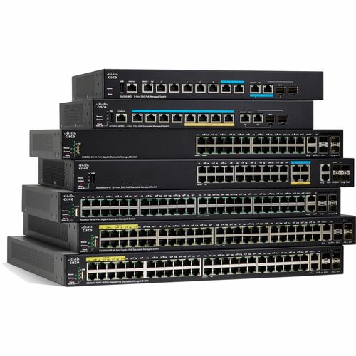 10-Gigabit Managed Switches That Provide the Ideal Combination of Features and Affordability To stay ahead in a competitive marketplace, small businesses need to make every dollar count. That means getting the most value from your technology investments, but it also means making sure that employees have fast, reliable access to the business tools and information they need. Every minute an employee waits for an unresponsive application - and every minute your network is down - has an impact on your bottom line. The importance of maintaining a strong and dependable business network only grows as your business adds more employees, applications, and network complexity. When your business needs advanced security and features but value is still a top consideration, you're ready for the new generation of Cisco® Small Business managed switches: the Cisco 350X Series. Cisco 350X Series Stackable Managed Switches The Cisco® 350X Series Stackable Managed Switches are a new line of stackable managed Ethernet switches that provide the rich capabilities you need to support a more demanding network environment at a very affordable price. The SG350X models provide 24 or 48 ports of Gigabit Ethernet connectivity with 10 Gigabit uplinks. The Cisco 350XG models provide 12, 24, or 48 ports of all 10 Gigabit Ethernet, providing a solid foundation for your current business applications as well as those you are planning for the future. In addition, these switches are easy to deploy and manage without a large IT staff. The SG350X platforms are Cisco's most cost-effective platforms with 10 Gigabit Ethernet and stacking. Cisco 350X Series switches are designed to protect your technology investment as your business grows. Unlike switches that claim to be stackable but have elements that are administered and troubleshot separately, the Cisco 350X Series provides true stacking capability, allowing you to configure, manage, and troubleshoot multiple physical switches as a single device and more easily expand your network. A true stack delivers a unified data and control plane, in addition to management plane, providing flexibility, scalability, and ease of use because the stack of units operate as a single entity constituting all the ports of the stack members. The switches also protect your technology investment with an enhanced warranty, dedicated technical support, and the ability to upgrade equipment in the future. Overall, the Cisco 350X Series provides the ideal technology foundation for a growing business. Features and Benefits Cisco 350X Series switches provide the advanced feature set that growing businesses require and that high-bandwidth applications and technologies demand. These switches can improve the availability of your critical applications, protect your business information, and optimize your network bandwidth to more effectively deliver information and support applications. The switches provide the following benefits. High-Performance 10 Gigabit Ethernet Cisco 350X Series switches break the barrier of 10 Gigabit Ethernet adoption by providing affordable and flexible configurations customized for the demanding network requirements of small and medium businesses. With 10G copper ports on SG350XG switches, you can easily and cost-effectively enable 10G connections to servers and network storage devices with standard RJ45 Ethernet cable. You can also connect your SG350X access switches to the SG350XG aggregation with 10G SFP+ fiber connections, building a high-performance backbone to speed up the overall operation of your network.